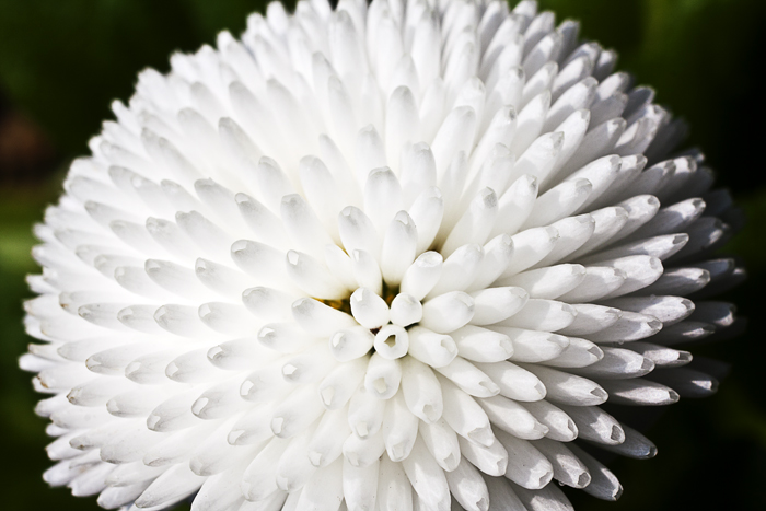 Also, die “weiße Kugel” ist ein stinknormales Gänseblümchen – eines vom Gärtner, nicht von der Wiese.
