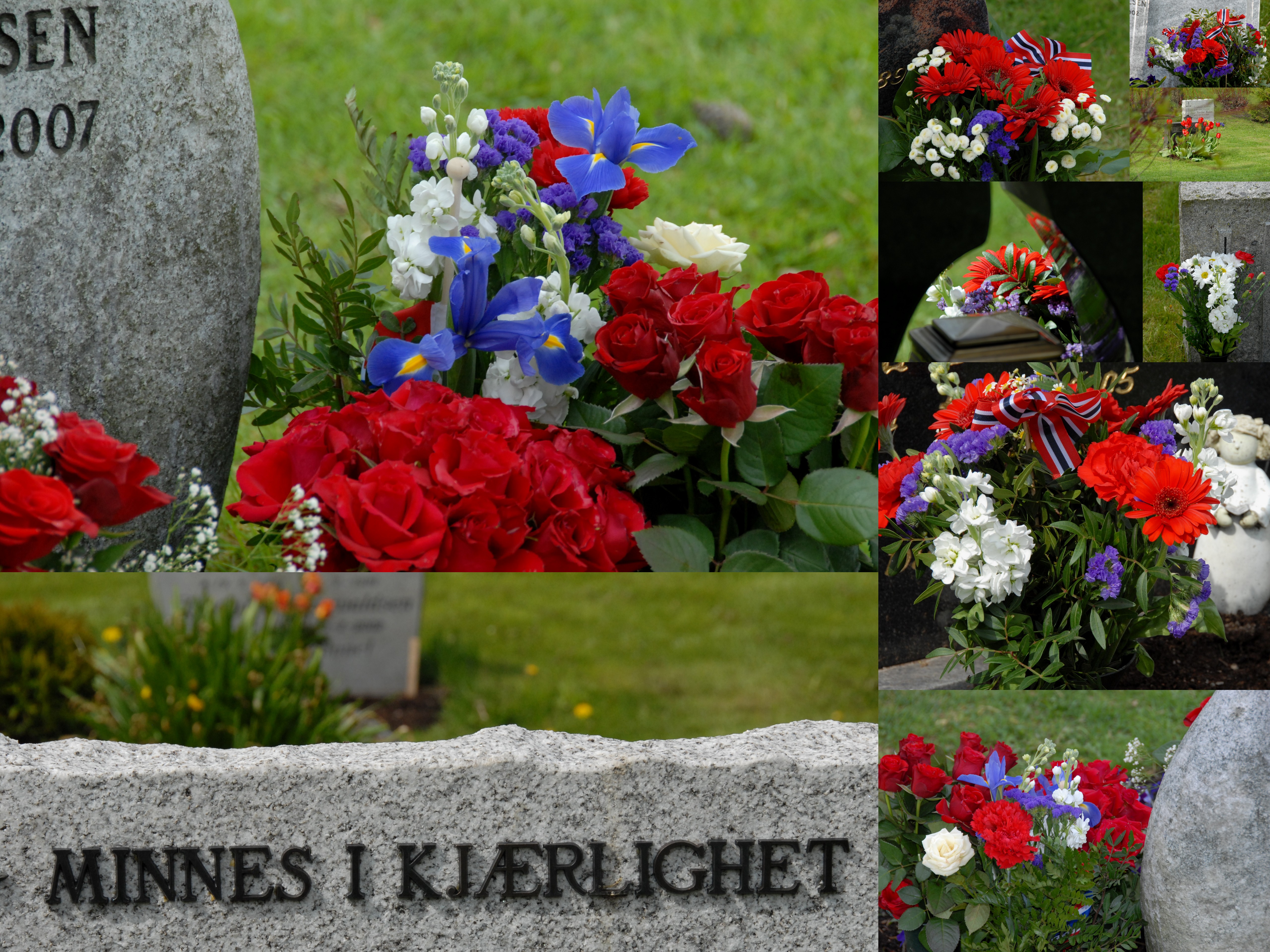 Traditionell strahlen zum Nationalfeiertag auch alle Friedhöfe in Rot-Weiss-Blau. Hier ein paar Eindrücke von Leie Gravlund in Fredrikstad heute Vormittag.