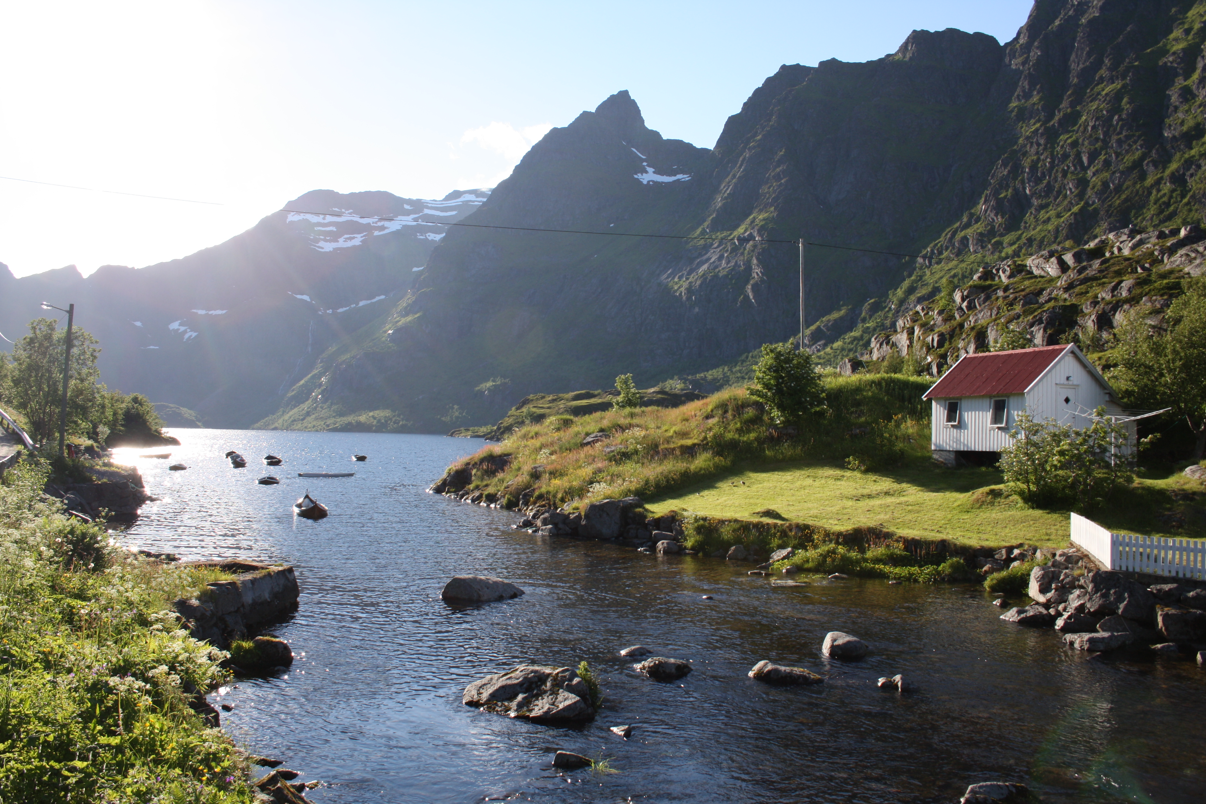 On Langøya the extremes of the Lofoten are tempered. The mountains are less steep, the landscape more tamed. A beautiful place for a bolig (holiday house).