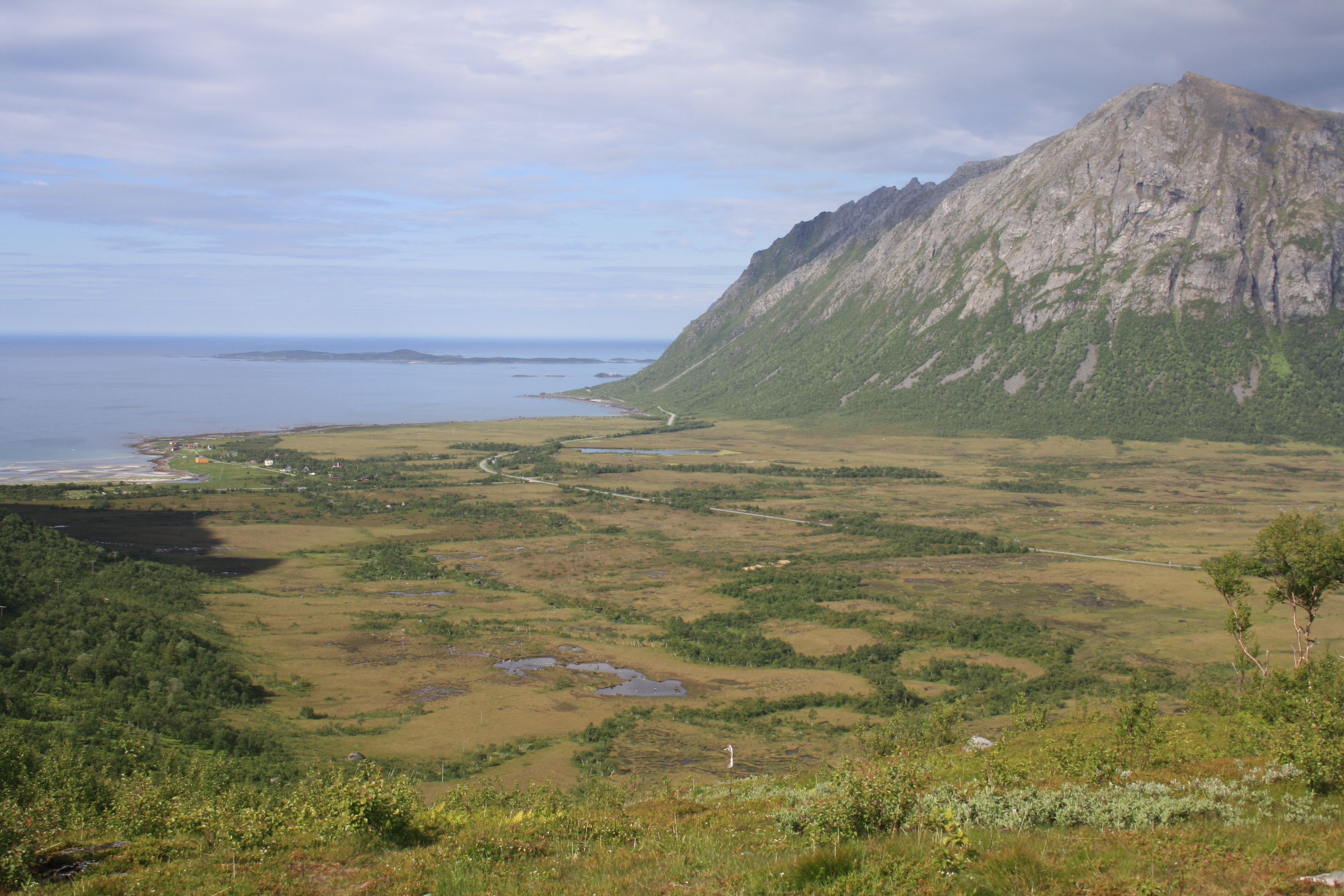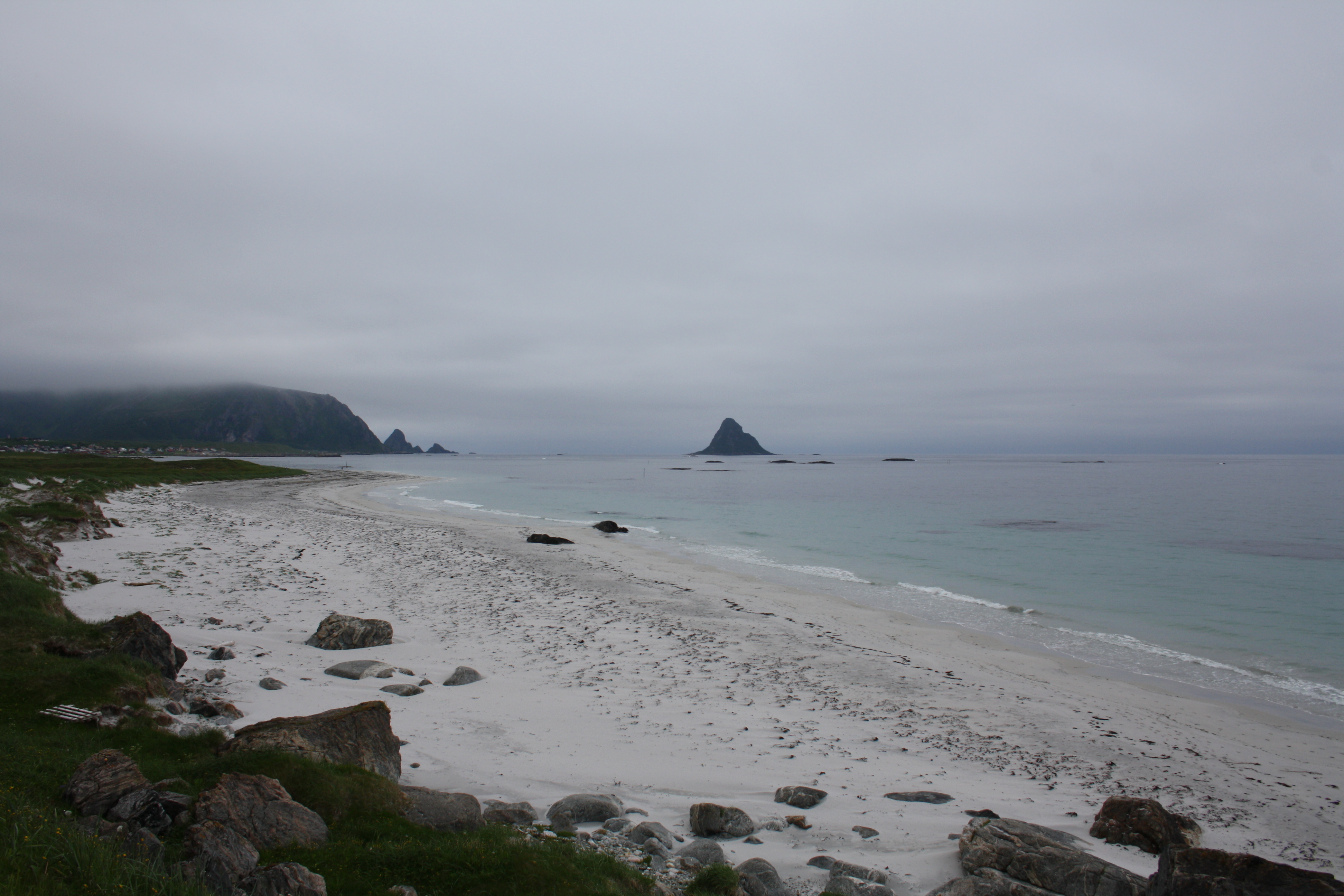 Am Tag, als ich Andøya entlang fuhr, lag die Insel unter tief hängenden Wolken. Andøya ist eine schöne Insel mit einem Weg an der nördlichen Küste – eine schöne Strecke, um sie bei der Mittenachtsonne entlang zu fahren. Wegen der Wolken hat das aber dieses Mal keinen Zweck. Stattdessen fuhr ich in einer unheimlichen Landschaft von Nebel und versteckten spitzen Bergen.