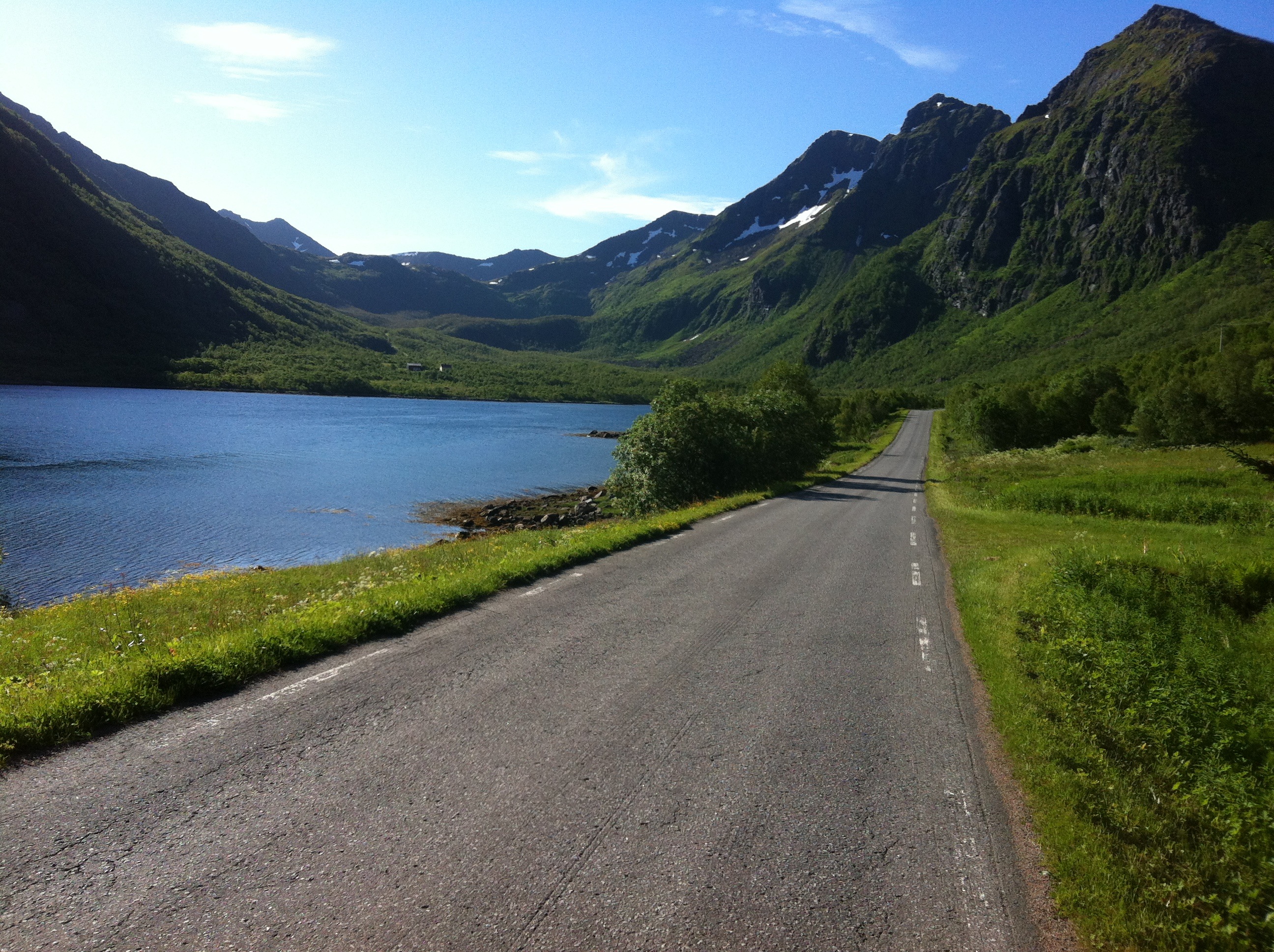 The long way to Fiskebøl, leaving the main road and following the northern coast on Austvågøya, is one of the most spectacular roads in Norway. I cycled slowly along the road, breathing in the amazing beauty of this wonderful place.